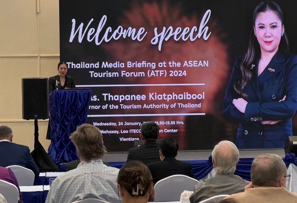 สายวันนี้ (24 มกราคม 2567) ณ งาน ASEAN Tourism Forum (ATF) 2024 โดยได้รับเกียรติจาก นางสาวมรกต ศรีสวัสดิ์ เอกอัครราชทูตไทย ประจำนครหลวงเวียงจันทน์ พร้อมด้วย นายกิตติ เชาวน์ดี เลขานุการรัฐมนตรีว่าการกระทรวงการท่องเที่ยวและกีฬา และ นางสาวฐาปนีย์ เกียรติไพบูลย์ ผู้ว่าการการท่องเที่ยวแห่งประเทศไทย (ททท.) ร่วมเป็นประธานในการเปิดคูหาประเทศไทย ซึ่งตั้งอยู่ในโซนกิจกรรม TRAVEX โดยมีผู้ประกอบการด้านการท่องเที่ยวจากประเทศไทยและสื่อมวลชนร่วมเป็นสักขีพยาน ณ อาคาร Lao ITECC Exhibition Center นครหลวงเวียงจันทน์ สาธารณรัฐประชาธิปไตยประชาชนลาว (สปป.ลาว)
