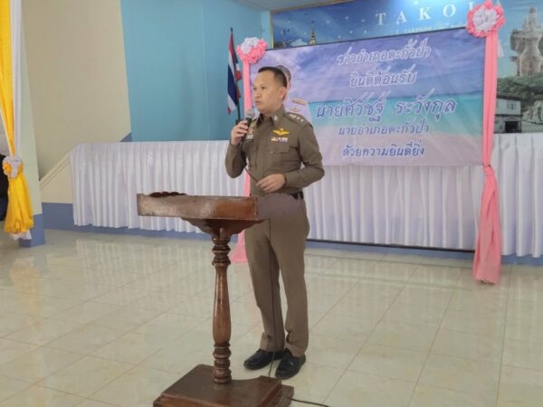 ภายหลังพบปะข้าราชการ เจ้าหน้าที่ฝ่ายต่าง ๆ แล้ว นายอำเภอตะกั่วป่าคนใหม่ ได้กล่าวขอบคุณทุกท่านที่มาร่วมต้อนรับ พร้อมกับเปิดใจพร้อมปฎิบัติหน้าที่บำบัดทุกข์บำรุงสุขประชาชนชาวอำเภอตะกั่วป่าอย่างเต็มความสามารถ ซึ่งหากมีพี่น้องประชาชนเดือดเนื้อร้อนใจเรื่องใด ๆ สามารถบอกกล่าวกับ นอภ.ได้โดยตรงทุกเวลา