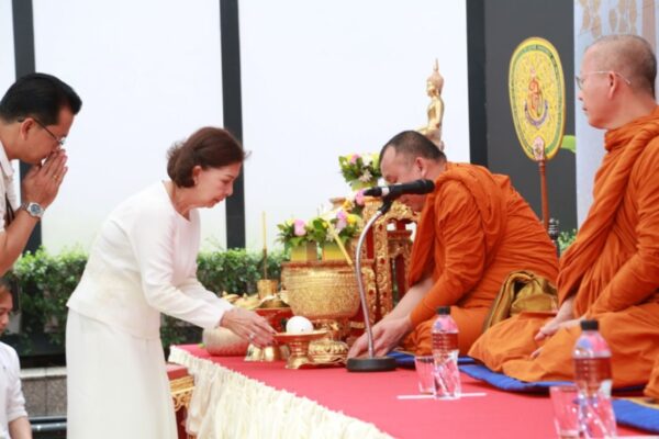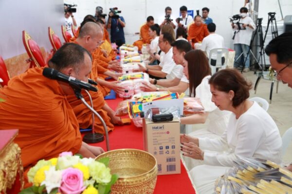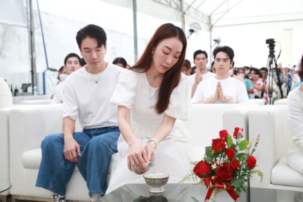 บรรยากาศเต็มไปด้วยแรงจิตอธิฐาน เพื่อขอขมากรรมและเปิดใจอโหสิกรรมให้แก่เจ้ากรรมนายเวรทั้งหลายทั้งปวง จากนั้นคณะผู้บริหารรวมไปถึงผู้จัดฯ-ผู้กำกับฯ และนักแสดง ได้ร่วมกันถวายเพล และถวายเครื่องจตุปัจจัยไทยธรรม พร้อมกับรับศีล ฟังเทศน์และคำสอนจาก พระมหาอดิศักดิ์ อภิปัญโญ ถึงผลกรรมจากการจองเวรเหมือนที่ตัวละคร อย่าง สร้อย และ ผีมะลิ ใน “เรือนทาส” ได้กระทำ ทั้งยังเทศน์เรื่องอานิสงส์ของการให้อโหสิกรรม ก่อนทุกคนในงานจะรับพร รับน้ำมนต์ เพื่อความเป็นสิริมงคลกันทั่วหน้า หลังจากนั้นทั้งผู้จัดฯ-ผู้กำกับฯและนักแสดงยังได้นำเหรียญหลวงพ่อปาน ทรงไก่หางพวง และ ธนบัตรขวัญถุง ที่ผ่านพิธีศักดิ์สิทธิ์บวงสรวงปลุกเสกจาก วัดบางนมโค ณ จังหวัดพระนครศรีอยุธยา มามอบให้แฟน ๆ เพื่อเสริมเมตตามหานิยม เรียกทรัพย์ และป้องกันสิ่งชั่วร้ายทั้งปวงอีกด้วย