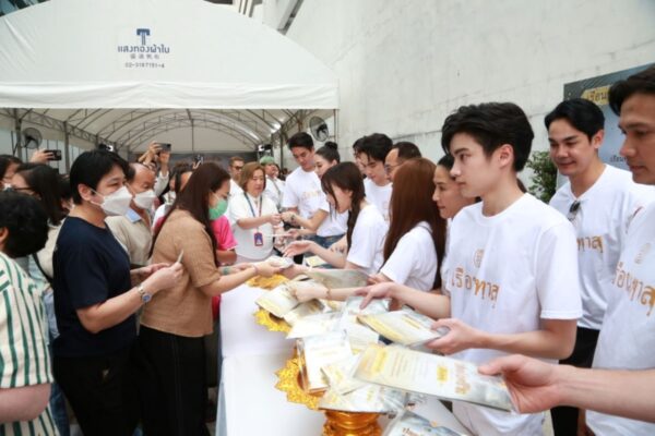 งานนี้ผู้จัดฯ-ผู้กำกับฯ “หนุ่ม กฤษณ์” ได้เผยความรู้สึกถึงงานในวันนี้ว่า “รู้สึกดีใจที่มีโอกาสได้มาทำบุญวันนี้นะครับ ดีใจที่วันนี้แฟนละครเรือนทาสมาได้บุญร่วมกัน ก็ขอส่งบุญทั้งหมดที่ทำในวันนี้ให้กับแฟนละครเรือนทาสทุกคนนะครับ วันนี้ก็นิมนต์เหรียญหลวงพ่อปานที่เราได้มีการพูดถึงในละคร และเหรียญนี้ก็ผ่านพิธีกรรมปลุกเสกมาแล้วที่วัดบางนมโค นำมาแจกให้กับแฟนละครทุกคน ก็อยากจะฝากแฟน ๆ ติดตามละครเรือนทาส เรื่องนี้จะสะท้อนให้เห็นเรื่องครอบครัว เป็นเรื่องชีวิตของคนจริง ๆ ถ้าเกิดดูละครแล้วก็สามารถนำข้อคิดดี ๆ ที่แฝงอยู่ในนั้นนำมาปรับใช้กับตัวเราเองได้ เรื่องความโลภ โกรธ หลง เหมือนอย่างวันนี้ที่พระท่านบอกไว้ ในละครเรือนทาสก็แฝงคุณธรรมเหล่านี้อยู่ครับ”