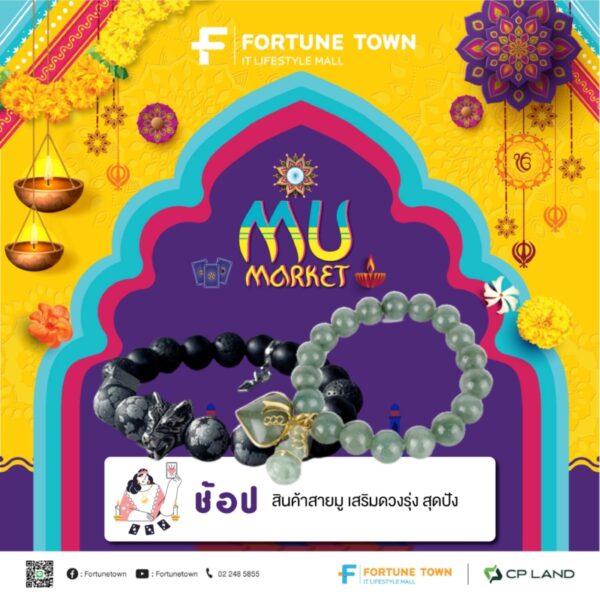 28 กุมภาพันธ์ 2567, กรุงเทพฯ – ฟอร์จูนทาวน์ (Fortune Town) ศูนย์รวมไอทีและไลฟ์สไตล์มอลล์ชั้นนำย่าน รัชดา-พระราม 9 เอาใจสายมู รวมที่สุดของสายมู ช้อป ฟิน ชิม มู (เตลู) มาไว้ที่เดียวในงาน “Mu Market” 29 กุมภาพันธ์ – 2 มีนาคม 2567 ฟอร์จูนทาวน์ รัชดา-พระราม 9