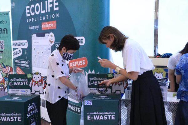 ภายในงานมีการจัดบูทเพื่อดาวน์โหลดแอปพลิเคชัน ECOLIFE ซึ่งเป็นแพลตฟอร์มที่เชื่อมต่อเครือข่ายร้านค้า สินค้า และบริการสีเขียวทั่วประเทศ (ECOMAP) ที่สนับสนุนการปฏิเสธพลาสติกแบบใช้ครั้งเดียวทิ้ง และการส่งคืนขยะตามจุดทิ้งที่เข้าร่วมโครงการฯ รวมทั้งให้ความรู้ด้านการจัดการสิ่งแวดล้อมที่ยั่งยืน เพื่อให้พนักงานและผู้เช่าอาคารได้รับความรู้ ความเข้าใจ ที่ถูกต้องเกี่ยวกับการจัดการขยะและขยะ E-Waste พร้อมกันนี้ ยังเปิดบูทรับบริจาคของไม่ใช้แล้ว (สภาพดี) ให้กับมูลนิธิกระจกเงา เพื่อนำไปคัดแยกและจำหน่ายเป็นสินค้ามือสอง เป็นการสนับสนุนการใช้ซ้ำหรือการนำกลับมาใช้ใหม่ รายได้นำเข้ามูลนิธิเพื่อช่วยเหลือศูนย์คนหายและคนไร้บ้าน และสนับสนุนการดำเนินงานด้านสังคมต่อไป