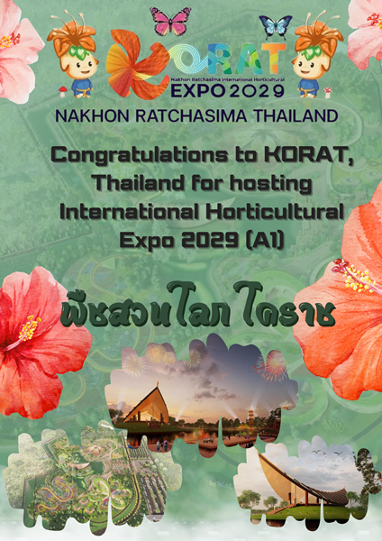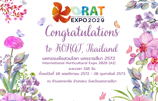 6 มีนาคม 2567 กรุงโดฮาร์ ประเทศกาตาร์ สมาคมพืชสวนระหว่างประเทศ (The International Association of Horticultural Producers – AIPH) ประกาศให้สิทธิ์ประเทศไทยเป็นเจ้าภาพจัดงานมหกรรมพืชสวนโลก (International Horticultural Expo) หรือ “โคราช เอ็กซ์โป 2029” การได้รับสิทธิ์จัดงานระดับโลกครั้งนี้ จะช่วยยกระดับจังหวัดนครราชสีมาให้เป็นศูนย์กลางด้านนวัตกรรมและความยั่งยืนในอุตสาหกรรมพืชสวน ภายใต้แนวคิด “ธรรมชาติและพรรณพืชเขียวขจี อนาคตแห่งโลกสีเขียว” (Nature & Greenery: Envisioning the Green Future)