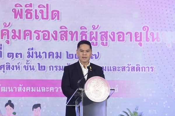 นายวราวุธ กล่าวเพิ่มเติมว่า วันนี้กระทรวง พม. โดยกรมกิจการผู้สูงอายุ (ผส.) มีความยินดีที่จะเปิดตัวโครงการบริบาลและคุ้มครองสิทธิผู้สูงอายุในชุมชน ซึ่งวันนี้เราได้รับความร่วมมือจากพี่น้องทั่วประเทศ ทั้งภาคเหนือ กลาง อีสาน และใต้ เข้ามาเป็นเจ้าหน้าที่ในการบริบาลและคุ้มครองสิทธิผู้สูงอายุ วันนี้เป็นจุดเริ่มต้นที่เราทำงานในหลายจังหวัด ในการที่จะมีเจ้าหน้าที่เข้าไปในแต่ละชุมชนเพื่อดูแลผู้สูงอายุ ซึ่งทุกวันนี้ประเทศไทยของเราเป็นสังคมสูงอายุเต็มรูปแบบเรียบร้อยแล้ว และในอนาคตปริมาณผู้สูงอายุในประเทศไทยก็จะเพิ่มมากขึ้นทุกปี ดังนั้นการที่ทุกฝ่ายจะต้องหันกลับมาให้ความสำคัญกับการดูแลผู้สูงอายุ ไม่ว่าจะเป็นทางด้านร่างกายและจิตใจ มิติทางด้านสังคม ด้านที่พักอาศัย รวมไปถึงเรื่องเทคโนโลยีต่างๆให้กับผู้สูงอายุ เป็นเรื่องที่สำคัญ ซึ่งเจ้าหน้าที่ของเราในวันนี้ ได้รับการฝึกอบรมและจะนำสิ่งต่างๆ เหล่านี้ ไปขยายต่อในการดูแลผู้สูงอายุ