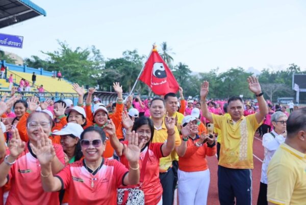 นายแพทย์อุทัย จินดาพล ที่ปรึกษาชมรมไทเก๊กจังหวัดพังงา กล่าวต้อนรับ นายสมุทร์ อุ่นมานิช ประธานชมรมไทเก๊กประจำจังหวัดพังงา กล่าวรายงาน มีคณะผู้บริหาร สาธารณสุขจังหวัดพังงา ประธานสาขาสมาคมสภาผู้สูงอายุแห่งประเทศไทยประจำจังหวัดพังงา หัวหน้าส่วนราชการ ข้าราชการ ชมรมไทเก๊ก สมาชิกชมรมฯ และผู้สูงอายุร่วมงานกว่า 2,100 คน เพื่อให้ประชาชนทุกเพศ ทุกวัย มีสุขภาพร่างกาย จิตใจแข็งแรง ใช้เวลาว่างให้เกิดประโยชน์ สร้างความสามัคคีระหว่างสมาชิกทั่วภาคใต้และต่างชาติ