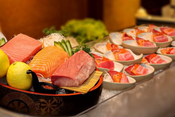 เชิญลิ้มลองความพรีเมียมกับ “เซตสามสหายซาชิมิพรีเมียม” ด้วย “โอโทโร่” ลายไขมันสวยงาม สัมผัสเนียนนุ่มละมุนลิ้น “ฮามาจิ” เนื้อแน่น หวานฉ่ำ สดใหม่ “แซลมอน” ชิ้นหนา ลายสวย อร่อยเต็มคำ บริการรวมในบุฟเฟต์นานาชาติมื้อเย็น ทั้งซีฟู้ด ซูชิพรีเมียม พาสต้า ขาหมู ข้าวต้มปลากะพง ขนมหวาน ผลไม้ ไอศกรีม เครื่องดื่มชา-กาแฟ น้ำอัดลม ระหว่างเวลา 18.00 – 22.00 น.