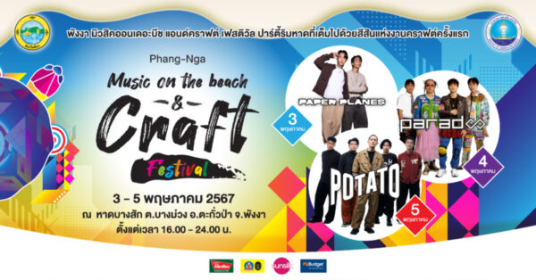 เมื่อวันที่10 เม.ย.67 ผู้สื่อข่าวรายงานว่า จังหวัดพังงา เตรียมเปิดบ้านต้อนรับนักท่องเที่ยวจากทั่วโลก ในงาน “Phang-Nga Music on the beach & Craft Festival” เทศกาลดนตรีและสิ่งประดิษฐ์ งาน Craft พร้อมร้านเด็ด ร้านอร่อย ของดีเมืองพังงา เพื่อกระตุ้น การท่องเที่ยวภายในประเทศ ส่งเสริมการท่องเที่ยวเชิงอาหาร บริการ ดนตรี และงานฝีมือของจังหวัดพังงา ให้เป็น Soft Power ผลักดันให้เป็นที่รู้จักในระดับสากล เป็นที่นิยมของนักท่องเที่ยวทั้งชาวไทยและชาวต่างชาติ พร้อมสร้างรายได้สู่ชุมชนและนำไปสู่การพัฒนาจังหวัดพังงาอย่างยั่งยืน