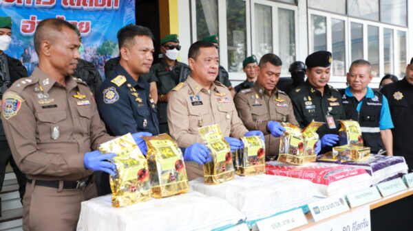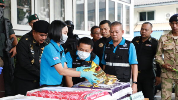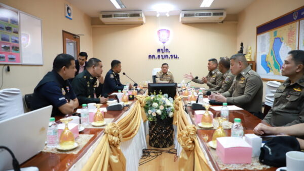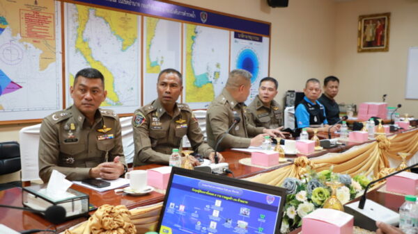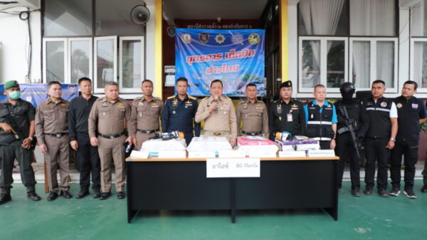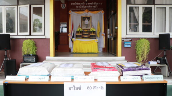 เมื่อเวลา 11.00 น.วันนี้ (7 พ.ค.67) ที่สถานีตำรวจน้ำ 2 กองกำกับการ 6 (สุราษฎร์ธานี) กองบังคับการตำรวจน้ำ อำเภอเมือง จังหวัดสุราษฎร์ธานี นายเจษฎา จิตรัตน์ ผู้ว่าราชการจังหวัดสุราษฎร์ธานี พร้อมด้วย พลตำรวจตรีเสริมพันธุ์ ศิริคง ผู้บังคับการตำรวจภูธรจังหวัดสุราษฎร์ธานี พันตำรวจเอกนิรัตน์ ช่วยจิตต์ ผู้กำกับการ 6 กองบังคับการตำรวจน้ำ ,นายรัชพล ปาละกูล นักวิเคราะห์นโยบายและแผนเชี่ยวชาญ สำนักงาน ป.ป.ส. ภาค8 , เจ้าหน้าที่ชุดสืบสวนตำรวจน้ำ ตำรวจชุดจำกับกุมและผู้เกี่ยวข้อง ร่วมกันแถลงผลจับกุมคดียาเสพติด
