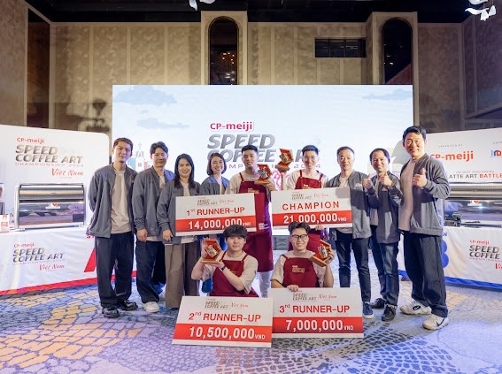 ผู้ชนะทั้ง 4 อันดับ ได้รับเงินรางวัลรวมกว่า52,000,000 VND พร้อมเดินหน้าสู่รอบ 64 คนสุดท้ายของการ แข่งขัน ‘CP-Meiji Speed Coffee Art Championship 2024’ ประเทศไทย ที่จะจัดขึ้นในวันที่ 12-14 กรกฎาคม 2567 ในงาน Thailand Coffee Fest 2024 รวมถึงจะมีสิทธิ์เข้าร่วมโครงการCP-Meiji Barista Camp 8 ที่จะจัดขึ้น ในช่วงปลายปีนี้ด้วยเช่นกัน