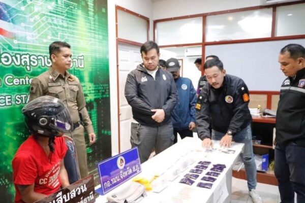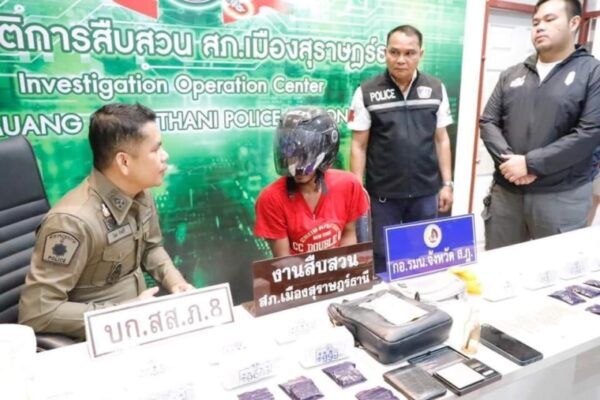 เมื่อเวลา 11.30 น.วันที่ 9 พ.ค.67 ที่ผ่านมา เจ้าหน้าที่ ได้ควบคุมตัว นายวรายุทธ โต๊ะแอ อายุ36ปี ชาวอำเภอคีรีรัฐนิคม จังหวัดสุราษฎร์ธานี ผู้ต้องหาคดียาเสพติด มาสอบสวนที่สถานีตำรวจภูธรเมืองสุราษฎร์ธานี โดยมีพันตำรวจเอกนิพล ชาตรี ผู้กำกับการสถานีตำรวจภูธรเมืองสุราษฎร์ธานี ร่วมสอบสวน โดยการจับกุมในครั้งนี้ สืบเนื่องมาจากเจ้าหน้าที่ ได้รับเบาะแสว่าจะมีการจำหน่ายและส่งมอบยาเสพติดในพื้นที่รอยต่ออำเภอเมืองจังหวัดสุราษฎร์ธานี จึงสนธิกำลัง ตำรวจชุดสืบสวนสถานีตำรวจเมืองสุราษฎร์ธานี ตำรวจชุดปฏิบัติการพิเศษสืบสวนฯ ตำรวจภูธรภาค 8 และ เจ้าหน้าที่ กอ.รมน. จังหวัดสุราษฎร์ธานี วางแผนจับกุม