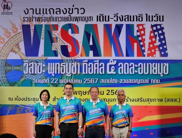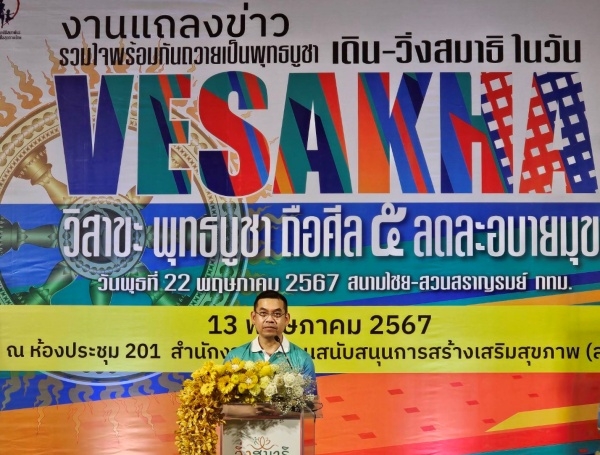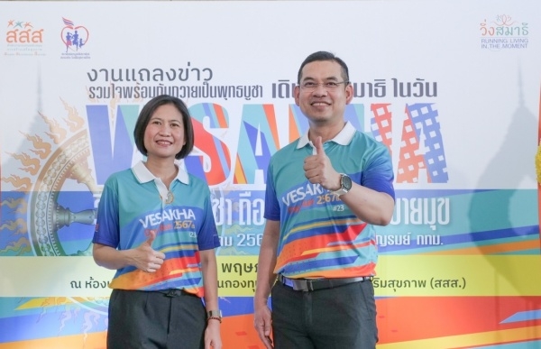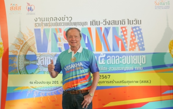 เมื่อวันที่ 13 พ.ค. 2567 ที่อาคารศูนย์เรียนรู้สุขภาวะ กรุงเทพฯ ดร.นพ.ไพโรจน์ เสาน่วม รองผู้จัดการกองทุนสนับสนุนการสร้างเสริมสุขภาพ (สสส.) กล่าวว่า สสส. มุ่งส่งเสริมให้ประชาชน มีสุขภาพที่ดี โดยเฉพาะเพิ่มระดับการมีกิจกรรมทางกายที่เพียงพอ ลดพฤติกรรมเนือยนิ่ง ลดเสี่ยงป่วยและเสียชีวิตจากโรคไม่ติดต่อ (NCDs) สาเหตุการหลักในการเสียชีวิตของคนไทย และเนื่องในวันวิสาขบูชา 2567 สสส. สานพลัง มูลนิธิสมาพันธ์ชมรมเดิน-วิ่งเพื่อสุขภาพไทย และภาคีเครือข่าย จัดกิจกรรม “เดิน วิ่งสมาธิ วิสาขะ พุทธบูชา ถือศีลห้า ลด ละ อบายมุข” ภายใต้แนวคิด “Running Living in the Moment : จิตแข็งแกร่ง อยู่ในร่างกายที่แข็งแรง” โดยใช้กิจกรรมการเดิน-วิ่งรณรงค์ให้ประชาชนเห็นความสำคัญของการออกกำลังกาย ควบคู่กับการพัฒนาสมาธิ ปฏิบัติบูชา เคลื่อนไหวร่างกายอย่างมีสติ