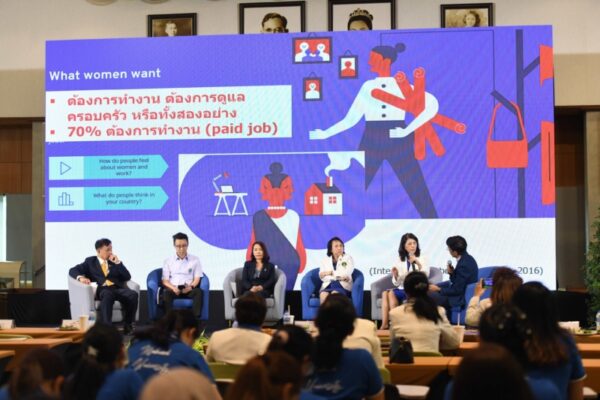 โอกาสนี้ ได้มีการเสวนาเรื่อง มาตรฐานสุขภาวะแรงงานสตรีไทย โดยมี คุณโสภา เกียรตินิรชา อธิบดีกรมสวัสดิการและคุ้มครองแรงงาน กระทรวงแรงงาน นายแพทย์เอกชัย เพียรศรีวัชรา รองอธิบดีกรมอนามัย กระทรวงสาธารณสุข รองศาสตราจารย์ ดร.เอมพร รตินธร คณบดีคณะพยาบาลศาสตร์ มหาวิทยาลัยมหิดล ผู้ช่วยศาสตราจารย์ ดร.พรนภา ตั้งสุขสันต์ หัวหน้าภาควิชาการพยาบาลสูติศาสตร์-นรีเวชวิทยา และประธานศูนย์ส่งเสริมการเลี้ยงลูกด้วยนมแม่และสุขภาพเด็กปฐมวัย คณะพยาบาลศาสตร์ มหาวิทยาลัยมหิดล และคุณเกียรติศักดิ์ เทพผดุงพร กรรมการบริหาร บริษัท เทพผดุงพรมะพร้าว จำกัด และ ดร.สง่า ดามาพงษ์ นักโภชนาการอิสระ ดำเนินการเสวนา