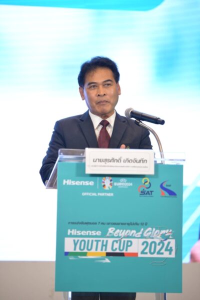 ไฮเซ่นส์ (Hisense) แบรนด์ผู้นำเทคโนโลยีระดับโลก ในฐานะ Official Partner Of UEFA EURO 2024 ร่วมกับ การกีฬาแห่งประเทศไทย (กกท.) และพันธมิตรทางธุรกิจ แถลงจัด “HISENSE BEYOND GLORY YOUTH CUP 2024” การแข่งขันฟุตบอล 7 คน เยาวชนอายุไม่เกิน 12 ปี ในเขตกรุงเทพมหานคร จำนวน 32 ทีม ชิงถ้วยเกียรติยศ พร้อมเงินรางวัล และอุปกรณ์โสตทัศนศึกษา มุ่งหวังเยาวชนไทยได้ใช้เวลาว่างให้เป็นประโยชน์ ห่างไกลยาเสพติด พร้อมจุดประกายฝันก้าวสู่นักฟุตบอลอาชีพต่อไป