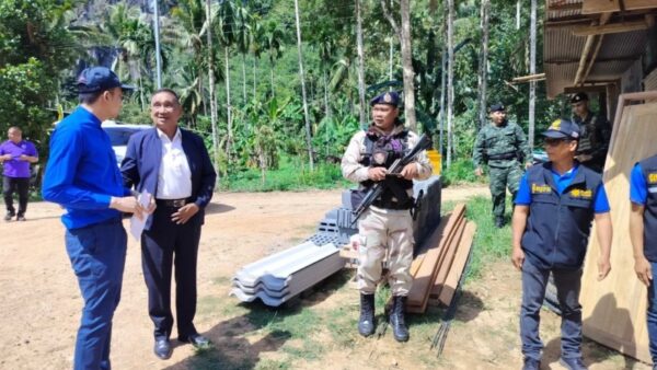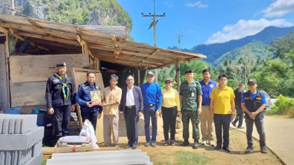 วันที่ ๖ มิถุนายน ๒๕๖๗ เวลา ๐๙.๓๐ น. ณ ตำบลถ้ำทะลุ อำเภอบันนังสตา จังหวัดยะลา พล.อ.มณี จันทร์ทิพย์ ที่ปรึกษา กองอำนวยการรักษาความมั่นคงภายในภาค ๔ ส่วนหน้า พ.อ.ชาติชาย เกื้อกิจ ผู้อำนวยการส่วนพัฒนายุทธศาสตร์ กองอำนวยการรักษาความมั่นคงภายในภาค ๔ ส่วนหน้า พร้อมด้วยนายเชาวลิต สิทธิฤทธิ์ นายอำเภอบันนังสตา นายสมใจ บุญอาจ ผู้ปกครองนิคมฯพัฒนาภาคใต้ จ.ยะลา พ.ท.พิจิตร ฤกษ์วิรี รอง ผบ.ฉก.ทพ.33 พร้อมด้วยหน่วยกำลังในพื้นที่ และภาคีเครือข่าย ร่วมกันส่งมอบวัสดุซ่อมบ้านและถุงยังชีพตามโครงการพัฒนาสังคมพหุวัฒนธรรมที่เข้มแข็งและเสริมสร้างการมีส่วนร่วมของทุกภาคส่วน โดยบูรณาการร่วมกับโครงการตำบลมั่นคง มั่งคั่ง ยั่งยืน จังหวัดชายแดนภาคใต้ ปีงบประมาณ พ.ศ. ๒๕๖๗