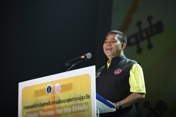 นายอุดม กล่าวว่า การจัดงานดนตรีบำบัดสำหรับการพัฒนาสุขภาวะผู้สูงวัย Music Therapy for the Elderly ในวันนี้ เกิดจากความร่วมมือทางวิชาการเพื่อการพัฒนาด้านดนตรีบำบัดสำหรับประชาชนคนช่วงวัย ระหว่างมหาวิทยาลัยมหิดล กับกระทรวงการพัฒนาสังคมและความมั่นคงของมนุษย์ โดยมีวัตถุประสงค์เพื่อเปิดตัวกิจกรรมด้านดนตรีบำบัดสำหรับการพัฒนาสุขภาวะผู้สูงวัย เพื่อการถ่ายทอดองค์ความรู้ด้านดนตรีบำบัดให้กับกลุ่มผู้สูงอายุและประชาชนทุกช่วงวัย และส่งมอบกิจกรรมด้านดนตรีบำบัดในการเป็นเครื่องมือในการศึกษาและขยายผลให้กับกลุ่มเป้าหมาย โรงเรียนผู้สูงอายุ ศูนย์พัฒนาคุณภาพชีวิตและส่งเสริมอาชีพผู้สูงอายุ (ศพอส.) และ ประชาชนทุกช่วงวัย ซึ่งจังหวัดแรกที่จัดกิจกรรมคือ จังหวัดสุพรรณบุรี โดยจะจัดใน 10 อำเภอ จากนั้นจะขยายผลไปจังหวัดนครปฐม จังหวัดอยุธยา จังหวัดชลบุรี และจังหวัดปทุมธานี ซึ่งเป็นพื้นที่จังหวัดนำร่อง