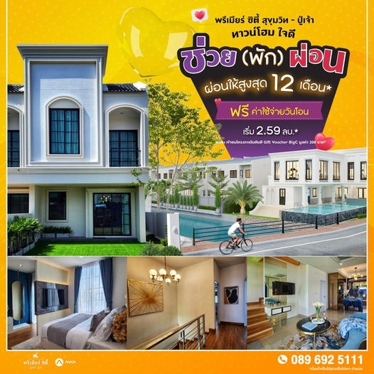 เจ้าตลาดสุขุมวิท-พระประแดง-ปู่เจ้าฯ “อาเวียพร็อพเพอร์ตี้” เห็นใจผู้บริโภคที่อยากมีบ้านแต่ภาระหนัก นำบ้านเดี่ยว-บ้านแฝด และทาวน์โฮม มาจัดโปรโมชั่นพิเศษ “ช่วย (พัก) ผ่อน” โดยช่วยลูกค้าผ่อนบ้านนานสูงสุด 12-18 เดือน พร้อมเปิดบ้านโซนใหม่หน้าบ้านตรงสวน ในราคาเริ่มต้นพิเศษที่ 2.59 ล้านบาท* รับโปรฯดีๆ ที่บูธอิพิเรียล สำโรง พิเศษ วันที่ 19 – 23 มิถุนายน 2567 นี้ พิเศษ ลูกค้า ที่ถือโบรชัวร์จากบูธเข้าชมบ้านตัวอย่าง รับเพิ่มทันที Gift Voucher BigC มูลค่า 200 บาท