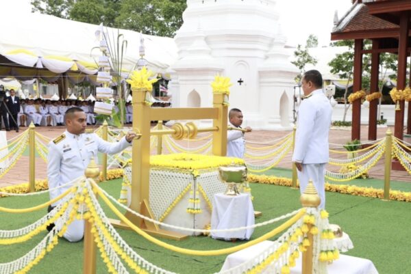 พิธีประกอบด้วย ผู้ว่าราชการจังหวัดสุราษฎร์ธานี ถวายราชสักการะ เบื้องหน้าพระบรมฉายาลักษณ์พระบาทสมเด็จพระเจ้าอยู่หัว แล้วจุดธูปเทียน บูชา โปรยข้าวตอกดอกไม้ ที่โต๊ะบวงสรวงเพื่อประกอบพิธีพลีกรรมตักน้ำจากแหล่งน้ำศักดิ์สิทธิ์ พราหมณ์บัณฑิตอ่านโองการบวงสรวงบูชาเทพยดา เทพารักษ์ ผู้ดูแลรักษาสถานที่แหล่งน้ำศักดิ์สิทธิ์ และผู้ว่าราชการจังหวัดสุราษฎร์ธานี อ่านคาถาพลีกรรมตักน้ำ