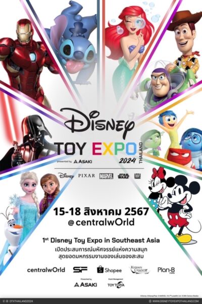 (23 กรกฎาคม 2567) บริษัท อาซากิ อินเตอร์เนชั่นแนล จำกัด, บริษัท เซ็นทรัลพัฒนา จำกัด (มหาชน), บริษัท เอส เอฟ คอร์ปอเรชั่น จำกัด (มหาชน), บริษัท ช้อปปี้ (ประเทศไทย) จำกัด, บริษัท ขวัญชนก โปรดักชั่น จำกัด,บริษัท แพลน บี มีเดีย จำกัด (มหาชน) และ บริษัท ทอยโทเปีย จำกัด จัดงานแถลงข่าว งาน Disney Toy Expo Thailand 2024 เผยการจัดงานครั้งยิ่งใหญ่ โดยเนรมิตพื้นที่ของเซ็นทรัลเวิลด์ให้เป็นดินแดนแห่งความสุข สนุกสนาน และ ย้อนความทรงจำในวัยเด็ก โดยรวบรวมของเล่นของสะสมสุดฮิตมาแบบจัดเต็ม ดีที่สุด ยิ่งใหญ่ที่สุด เข้าชมงานได้ทันทีไม่มีค่าใช้จ่าย ตั้งแต่ 15-18 สิงหาคม 2567 นี้