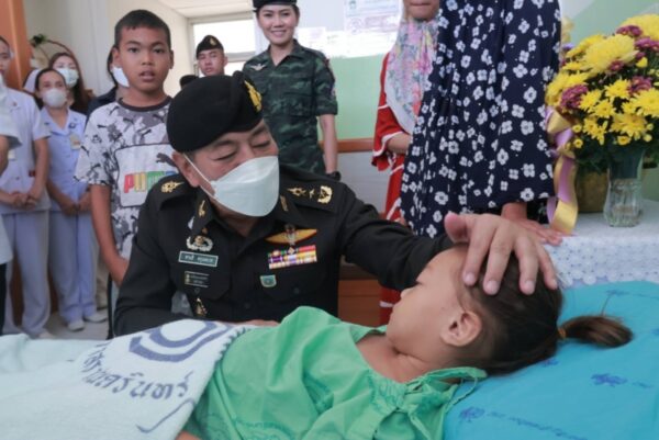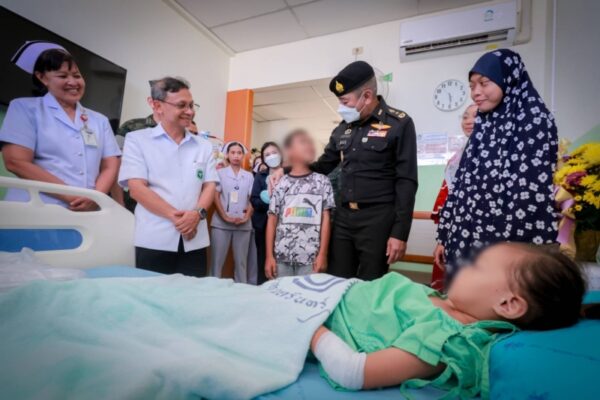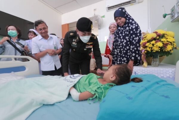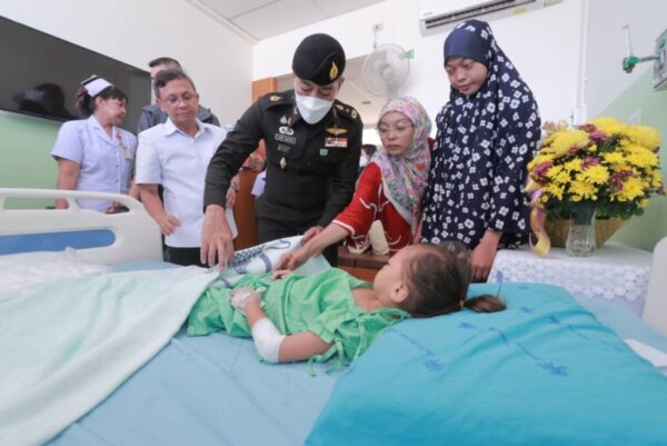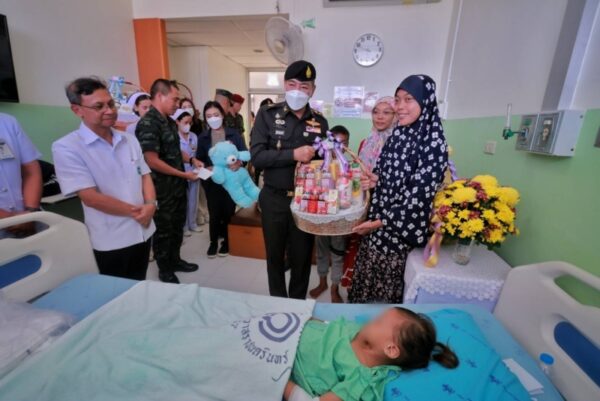 วันนี้ (13 สิงหาคม 2567) เวลา 17.00 น. ที่โรงพยาบาลนราธิวาสราชนครินทร์ ตำบลบางนาค อำเภอเมือง จังหวัดนราธิวาส พลโท ศานติ ศกุนตนาค แม่ทัพภาคที่ 4 / ผู้อำนวยการรักษาความมั่นคงภายในภาค 4 ลงพื้นที่เยี่ยมให้กำลังใจพร้อมมอบกระเช้าเยี่ยม อาสาสมัครทหารพราน พิทักษ์ชัย พวงอินทร์ สังกัดกองร้อยทหารพรานนาวิกโยธินกองทัพเรือที่ 11 และ เด็กหญิง สีตีอานีสา ลาโม๊ะ อายุ 5 ปี 7 เดือน ผู้ได้รับบาดเจ็บจากเหตุการณ์ความรุนแรงในพื้นที่จังหวัดชายแดนภาคใต้ กรณีคนร้ายลอบปาระเบิดแสวงเครื่องแบบไปป์บอมบ์จำนวน 3 ลูก ใส่ด่านตรวจบาตู บ้านบาตู หมู่ที่ 6 ตำบลปะลุกาสาเมาะ อำเภอบาเจาะ จังหวัดนราธิวาส เวลาประมาณ 20.35 น. โดยใกล้กันมีการจัดงาน “ตลาดถนนคนเดินต้นไทร” ซึ่งทางเทศบาลตำบลต้นไทรจัดขึ้น ระหว่างวันที่ 9 – 12 สิงหาคม 2567