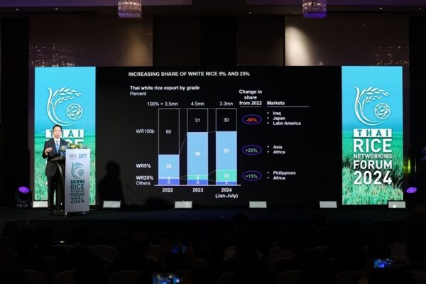 กระทรวงพาณิชย์ โดยกรมการค้าต่างประเทศ จัดงาน “Thai Rice Networking Forum 2024” ภายใต้แนวคิด “Local RICE…Global FOOD ข้าวไทยสู่อาหารโลก”ระหว่างวันที่ 17 -19 กันยายน 2567 ณ โรงแรม เซ็นทาราแกรนด์ แอท เซ็นทรัลเวิลด์ โดยได้เชิญนักธุรกิจคู่ค้า ผู้แทนการค้า ผู้นำเข้า ผู้ส่งออก พร้อมผู้เชี่ยวชาญด้านการผลิตและการค้าข้าวจากทั่วโลก ร่วมแลกเปลี่ยนองค์ความรู้ ถกข้อมูลสถานการณ์การผลิต การค้า ทิศทางและแนวโน้มตลาด เพื่อร่วมขับเคลื่อนอุตสาหกรรมข้าวสร้างความมั่นคงด้านอาหารโลก
