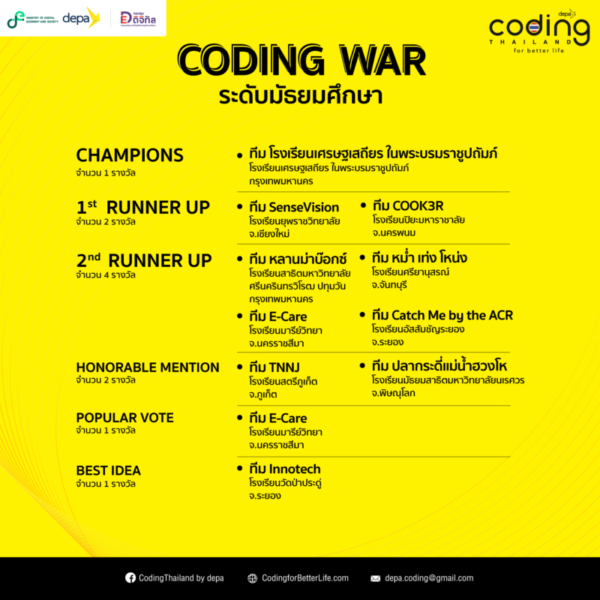 ติดตามรายละเอียดเพิ่มเติมได้ที่ www.depa.or.th, CodingforBetterLife.com และเฟซบุ๊กเพจ depa Thailand และCodingThailand by depa
