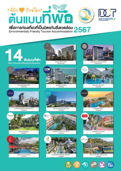 กรมการท่องเที่ยวขอแสดงความยินดี 14 ที่พักต้นแบบเพื่อการท่องเที่ยวที่เป็นมิตรกับสิ่งแวดล้อม (Environmentally Friendly Tourism Accommodation) ประจำปี 2567 เตรียมต่อยอดสร้างจุดขายที่พักรักษ์โลก เสริมสร้างศักยภาพให้ประเทศไทยเป็นจุดหมายปลายทางด้านการท่องเที่ยวอย่างยั่งยืน