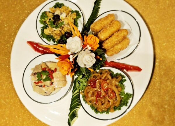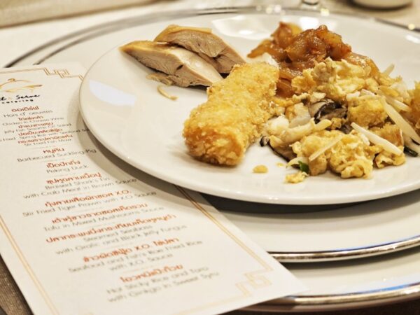 เมนูชุดอาหารที่นำเสนอในครั้งนี้ประกอบไปด้วย ออเดิร์ฟร้อน 4 ชนิด ไก่แช่เหล้า–หอมเหล้าจีนอ่อนๆทานกับซอส ยำแมงกะพรุน–กรอบหอมน้ำมันงารสชาติกลมกล่อม ปอเปี๊ยะสลัดซีฟู้ด–กับน้ำจิ้มบ๊วย, กระเพาะปลาผัดแห้ง–กระเพาะปลานุ่มผัดกับถั่วงอกหอมกระทะ, ซุปหูฉลามเนื้อปู–เนื้อปูแน่นกับหูฉลามในน้ำซุปรสชาติกลมกล่อม, หมูหัน–หนังกรอบกำลังดีทานกับซอส (นำเนื้อมาประยุกต์ทำได้อีก 1 เมนู) เป็ดปักกิ่ง–หนังกรอบกับซีอิ้วหวาน (นำเนื้อมาประยุกต์ทำได้อีก 1 เมนู), กุ้งลายเสือผัดซอส XO-กุ้งเนื้อแน่นรสชาติเข้มข้น, เต้าหู้ขาวทอดราดซอสเห็ดรวม–เต้าหูทอดกรอบนอกนุ่มในราดซอสเห็ดรวม, ปลากะพงนึ่งกระเทียมเห็ดหูหนูดำ–เนื้อปลานุ่มสดหอมกระเทียม, ข้าวผัดซีฟู้ด XO ไข่ปลา–ข้าวผัดหอมกรุ่นกลิ่นกระทะคลุกเคล้าด้วยซอสXO และโอวหนี่แปะก๊วย