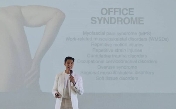 นายแพทย์ กันตพงศ์ ทองรงค์ แพทย์ผู้ก่อตั้ง PYONG Rehabilitation Clinic กล่าวว่า “กลุ่มอาการปวดกล้ามเนื้อและพังผืดเรื้อรัง หรือ ที่คนไทยเรารู้จักกันในชื่อ office syndrome เป็นสาเหตุหลัก ๆ ที่ทำให้ประสิทธิภาพและบรรยากาศในการทำงานแย่ลงครับ และผู้คนจำนวนมาก ยังไม่รู้ว่าจะต้องการจัดการกับปัญหาเหล่านี้อย่างไร และแน่นอนว่า หลายครั้งอาการสามารถรักษาได้ด้วยการปรับพฤติกรรมในชีวิตประจำวัน และ การออกกำลังกายยืดเหยียดที่เหมาะสมและเพียงพอ ความรู้เป็นสิ่งสำคัญ เมื่ออาการดีขึ้น คุณภาพชีวิตของพวกเขาจะดีขึ้นตามมา”