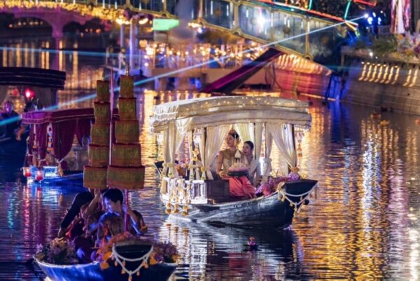 งานลอยกระทงในปีนี้ ททท. ได้เนรมิตบรรยากาศแห่งความสุขและความสวยงาม นำเสนอประเพณีลอยกระทงรากฐานทางวัฒนธรรมที่เปี่ยมด้วยเสน่ห์ไทยอันทรงคุณค่า โดยนำสื่อผสมและเทคโนโลยีทันสมัย แต่งแต้มสีสันคลองผดุงกรุงเกษมสร้างสรรค์ประสบการณ์สุดแสนพิเศษ ในคืนวันเพ็ญ ด้วยแนวคิด “Amazing Night of Lights : Loi Krathong Festival” เฉลิมฉลองประเพณีลอยกระทง พร้อมส่งเสริมยกระดับเทศกาลงานประเพณีไทยสู่งานเทศกาลระดับโลก (Local to Global) ด้วยขบวนแห่ประเพณีลอยกระทงและนางนพมาศทางน้ำ นำขบวนโดย ‘ญาญ่า – อุรัสยา เสปอร์บันด์ พร้อมส่งเสริมประเพณีลอยกระทงวิถีใหม่ที่สร้างความยั่งยืนทั้งทางด้านวัฒนธรรมไปพร้อมกับการใส่ใจสิ่งแวดล้อม