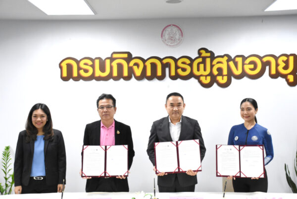 วันพุธที่ 27 พฤศจิกายน พ.ศ. 2567 เวลา 09.00 น. ณ บริเวณชั้น 7 กรมกิจการผู้สูงอายุ อาคารกระทรวงการพัฒนาสังคมและความมั่นคงของมนุษย์ โดยกรมผู้สูงอายุ ร่วมกับ สมาคมส่งเสริมสุขภาพและโยคะฟลายไทย และบริษัท ฟิตทูฟลายสตูดิโอ จำกัด จัดพิธีลงนามหนังสือแสดงเจตจำนงพัฒนาความร่วมมือด้านการส่งเสริมสุขภาพ โดยเฉพาะในกลุ่มผู้สูงอายุและกลุ่มผู้ดูแลผู้สูงอายุ โดยมีนายธนสุนทร สว่างสาลี อธิบดีกรมกิจการผู้สูงอายุ เป็นประธานในพิธี และลงนามหนังสือแสดงเจตจำนงฯ โดยมีนางพรนิภา มาสิลีรังสี รองอธิบดีกรมกิจการผู้สูงอายุ พันเอกปรีฎก ทองวันดี นายกสมาคมส่งเสริมสุขภาพและโยคะฟลายไทย นางสาวภัทรภัสสร์ ภัทรศิลป์วีรกุล กรรมการผู้จัดการ บริษัท ฟิตทูฟลายสตูดิโอ จำกัด เป็นพยานในพิธีลงนาม การลงนามในหนังสือแสดงเจตจำนงในครั้งนี้ ฯ มีวัตถุประสงค์เพื่อยกระดับคุณภาพชีวิตผู้สูงอายุอย่างยั่งยืน ผ่านการส่งเสริมการออกกำลังกาย และการดูแลสุขภาพแบบองค์รวม