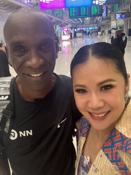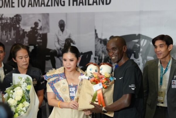 วันนี้ (27 พฤศจิกายน 2567) นางสาวฐาปนีย์ เกียรติไพบูลย์ ผู้ว่าการการท่องเที่ยวแห่งประเทศไทย (ททท.) พร้อมด้วยนาย กอบเกียรติ แสงวนิชย์ ผู้อำนวยการจัดการแข่งขัน รายการ “อะเมซิ่ง ไทยแลนด์ มาราธอน แบงค็อก พรีเซ็นต์บาย โตโยต้า ครั้งที่ 7” หรือ “วิ่งผ่าเมือง” มาร่วมต้อนรับ เอเลียด คิปโชเก ตำนานนักวิ่งมาราธอนโลกชาวเคนยา ผู้เป็นเจ้าของสถิติวิ่งมาราธอนได้ต่ำกว่า 2 ชม. แชมป์โอลิมปิกเกมส์ 2 สมัย พร้อมคณะ ได้เดินทางมาถึงสนามบินสุวรรณภูมิเป็นที่เรียบร้อยแล้ว