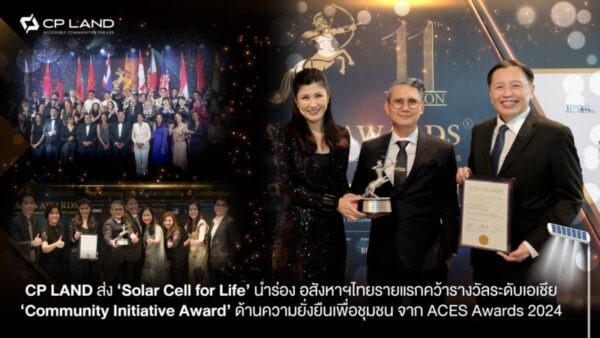นายกีรติ ศตะสุข ประธานเจ้าหน้าที่บริหาร บริษัท ซี.พี. แลนด์ จำกัด (มหาชน) หรือ CP LAND ผู้พัฒนาอสังหาริมทรัพย์ชั้นนำของประเทศไทย กล่าวว่า โครงการ “Solar Cell for Life” สะท้อนถึงความมุ่งมั่นของ CP LAND ในการยกระดับความปลอดภัยและคุณภาพชีวิตในพื้นที่ชนบทรวมถึงส่งเสริมความยั่งยืนในระยะยาว ตามแนวทางการตอบแทนสังคม (Social Contribution) ภายใต้ปรัชญาพื้นฐาน ‘คุณภาพเพื่อทุกชีวิต’ หรือ ‘Accessible Communities for Life’ ของ CP LAND ที่ต้องการส่งมอบความสุขให้แก่ชุมชนที่ห่างไกล “แม้ในพื้นที่ ที่ห่างไกล ความสุขก็จะไปเป็นแสงสว่าง” รางวัล Community Initiative Award จาก Asia’s Corporate Excellence & Sustainability (ACES) Awards 2024 ถือเป็นเครื่องยืนยันถึงความเป็นผู้นำของ CP LAND ในด้านความรับผิดชอบต่อสังคม เรามุ่งมั่นที่จะมีส่วนร่วมในการสร้างประโยชน์ที่ยั่งยืนต่อชุมชนและสิ่งแวดล้อมในระยะยาวอย่างต่อเนื่อง ความสำเร็จนี้สะท้อนถึงความมุ่งมั่นของ CP LAND ในการสร้างสรรค์สิ่งดีๆ เพื่อชุมชนและสังคม พร้อมทั้งเป็นตัวอย่างของการพัฒนาโครงการที่ผสานการเติบโตทางธุรกิจเข้ากับความรับผิดชอบต่อสังคมอย่างแท้จริง