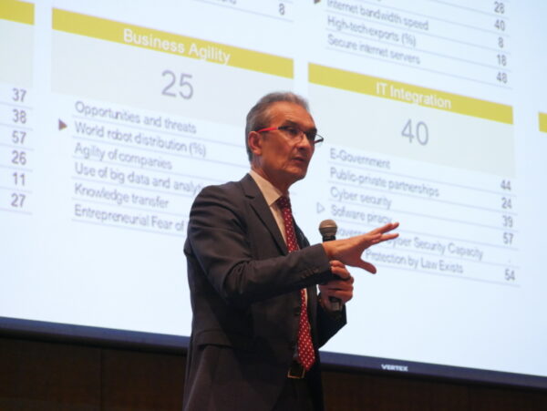 สำหรับในด้านทัศนคติและการตอบรับกับเทคโนโลยี นับว่าประเทศไทยทำได้ในระดับที่ดี จากข้อมูลการใช้โทรศัพท์มือถืออยู่ในลำดับที่ 26 ซึ่งอยู่ในเกณฑ์ดี ทำให้สามารถเข้าถึงเทคโนโลยีได้ดีกว่า ขณะที่ด้านการบูรณาการระบบไอที ทั้งภาครัฐและเอกชนและการบริการ ไซเบอร์ซิเคียวริตี้ อาจจะต้องเร่งทำให้มากขึ้น ซึ่งในปีต่อไป จะเพิ่มในส่วน AI เข้ามาด้วย แม้จะค่อนข้างยากเพราะข้อมูลการใช้ AI ยังมีไม่มาก แต่หากรัฐบาลสามารถออกกฎหมายเพื่อสนับสนุนการใช้ AI จะช่วยขับเคลื่อนได้มาก