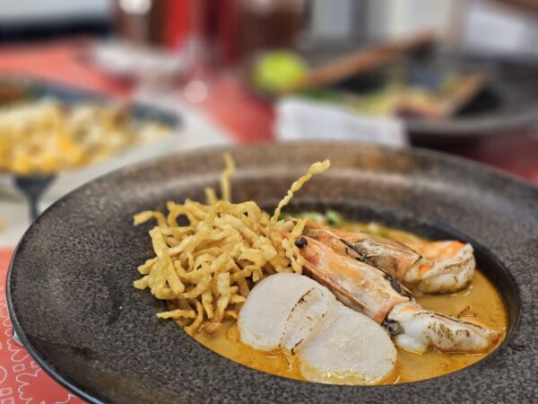 สำหรับเมนูของ “JAO Khao Soi Kitchen” จะเน้นเมนูที่ทานง่าย แต่มีความพิเศษ มีเอกลักษณ์เฉพาะตัวที่ไม่เหมือนใคร อีกครั้งยังครีเอตรสชาติออกมาให้ถูกปากคนรักอาหารเหนือแท้ๆ แต่ใส่ความฟิวชั่นเข้าไปในบางเมนูด้วยเช่นกัน โดยเมนูที่แนะนำเริ่มต้นด้วย ปูอ่องโซเมนเย็น ล็อบสเตอร์ออย์ จานนี้ที่เน้นวัตถุดิบสุดพรีเมียม นำความโลคัลอย่างปูอ่อง มาแมทช์กับความพิถีพิถันช่างเลือกกับเส้นโซเมนเย็น เสริมทัพยั่วน้ำลายด้วยลอบสเตอร์ออย ที่จะทำให้จานนี้พิเศษ เรียกว่าเป็นการฉลองเปิดสาขาแรกของ จ้าวฯ และเซ็นทรัลชิดลมไว้ด้วยกัน