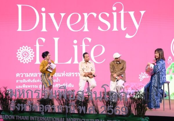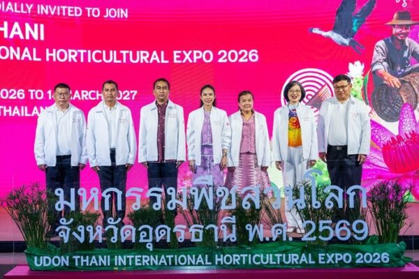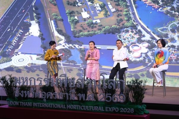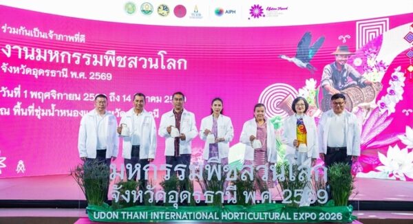 วันที่ 25 กุมภาพันธ์ พ.ศ. 2568, เวลา 17.00 น. กรุงเทพมหานคร : ศ.ดร.นฤมล ภิญโญสินวัฒน์ รัฐมนตรีว่าการกระทรวงเกษตรและสหกรณ์ มอบหมาย นางสาวอนงค์นาถ จ่าแก้ว เลขานุการ รัฐมนตรีว่าการกระทรวงเกษตรและสหกรณ์ ให้เกียรติเป็นประธานงานแถลงข่าวงานมหกรรมพืชสวนโลกจังหวัดอุดรธานี พ.ศ.2569 โดยมี นายรพีภัทร์ จันทรศรีวงศ์ อธิบดีกรมวิชาการเกษตร มอบหมายให้ นางวิลาวัณย์ ใคร่ครวญ รองอธิบดีกรมวิชาการเกษตร พร้อมด้วย นายราชันย์ ซุ้นหั้ว ผู้ว่าราชการจังหวัดอุดรธานี นางนิชาภา ยศวีร์ รองผอ.ทีเส็บ ด้านการตลาดและสร้างพันธมิตรภายในประเทศ ร่วมแถลงข่าว ถึงความพร้อมการจัด “งานมหกรรมพืชสวนโลกจังหวัดอุดรธานี พ.ศ.2569” ภายใต้แนวคิด “Diversity of Life, connecting people, water and plants for sustainable living ความหลากหลายแห่งสรรพชีวิต : สายสัมพันธ์แห่งผู้คน สายน้ำและพืชพรรณ สู่การดำรงชีวิตที่ยั่งยืน”