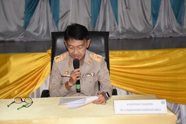 นายพงศ์ธสิษฐ์ ปิจนันท์ รองผู้ว่าราชการจังหวัดชลบุรี กล่าวว่า ก่อนอื่นต้องขอแสดงความชื่นชมยินดีกับท่านสมาชิกสภาเทศบาลเมืองอ่างศิลาทุกท่าน และท่านนายกเทศนตรีเมืองอ่างศิลา ที่ได้รับความไว้วางใจจากพี่น้องประชาชนให้เข้ามาทำหน้าที่ที่สำคัญในการพัฒนาตำบลอ่างศิลา อำเภอเมืองชลบุรี จังหวัดชลบุรี มีความปรารถนาดีที่จะได้เห็นสภาเทศบาลเมืองอ่างศิลาชุดนี้ เป็นชุดที่ร่วมกันคิด ร่วมกันทำ ร่วมกันตัดสินใจ และร่วมกันพัฒนาเทศบาลเมืองอ่างศิลาให้มีความเพียบพร้อมในทุก ๆ ด้าน เพื่อประโยชน์สุขของประชาชนให้มีคุณภาพชีวิตที่ดี มีสังคมที่เอื้ออาทรชุมชนมีความเข้มแข็ง มีความปลอดภัยในชีวิตและทรัพย์สินตลอดจนมีระบบเศรษฐกิจที่ดีต่อไป