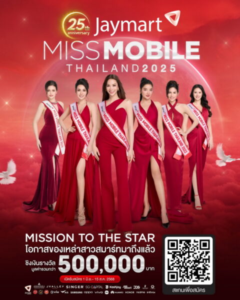 รายละเอียดการประกวด “Jaymart Miss Mobile Thailand 2025” พร้อมเปิดรับสมัครสาวสวย มีบุคลิกมั่นใจและสมาร์ท เข้าร่วมประกวดเพื่อเป็นตัวแทนประชาสัมพันธ์ผลิตภัณฑ์และนวัตกรรมโทรศัพท์มือถือและเทคโนโลยี ชิงเงินรางวัลรวมกว่า 500,000 บาท พร้อมถ้วยรางวัล สายสะพายเกียรติยศ และของรางวัลอีกมากมายจากผู้สนับสนุน นอกจากนี้ผู้เข้าร่วมประกวดที่ผ่านเข้ารอบ 5 คนสุดท้าย จะได้โอกาสเข้าร่วมแสดงใน VIU Original Thai Series ในปี 2026 อีกด้วย สาวงามที่มีความมั่นใจ ฉลาดทันสมัย และพร้อมจะก้าวสู่เส้นทางความสำเร็จ มาร่วมสร้างตำนานบทใหม่กับ Jaymart Miss Mobile Thailand 2025 สมัครได้แล้วตั้งแต่วันนี้ – 15 สิงหาคม 2025 ติดตามรายละเอียดและสมัครได้ที่ https://instore.jaymartstore.com/miss-mobile-thailand-2025