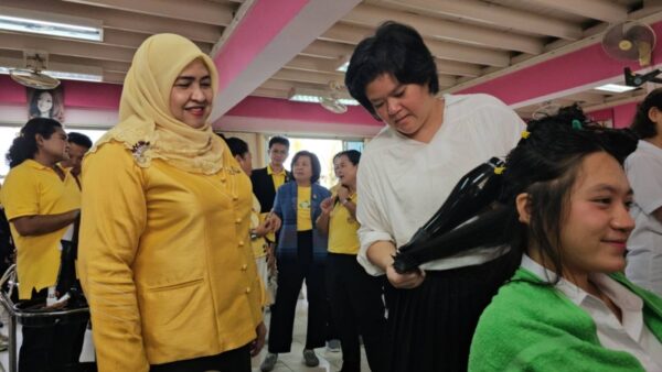 นางสุดา กล่าวเพิ่มเติมว่า กิจกรรมในวันนี้ เป็นส่วนหนึ่งของกิจกรรมเสวนาสัญจรฯ ซึ่งมีวัตถุประสงค์เพื่อศึกษา ดูงานด้านการพัฒนาทักษะอาชีพ และการเสริมสร้างความเข้มแข็งให้ครอบครัว ณ ศูนย์เรียนรู้การพัฒนาสตรีและครอบครัวภาคกลาง จังหวัดนนทบุรี เปิดอบรมทั้งหลักสูตรระยะสั้นและระยะยาว หลักสูตรที่เปิดอบรม อาทิ หลักสูตรเสริมสวย ตัดผมชาย เบเกอรี่ และนวดแผนไทย เป็นต้น พร้อมมีบริการอาหารและที่พักฟรี (เฉพาะสตรี) การอบรมเน้นการเรียนรู้ จากรูปแบบการจัดอบรมที่มีประสิทธิภาพ และเป็นที่ต้องการของตลาด เพื่อให้สามารถนำไปปรับใช้ในการส่งเสริมอาชีพในพื้นที่ของตนเอง และเป็นแนวทางสร้างรายได้ที่มั่นคงพึ่งพาตนเองได้ในระยะยาว และพาเยี่ยมชมบูธกิจกรรมและผลิตภัณฑ์จากกลุ่มอาชีพ จำนวน 6 บูธ ได้แก่