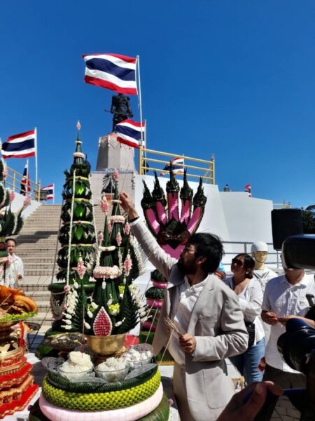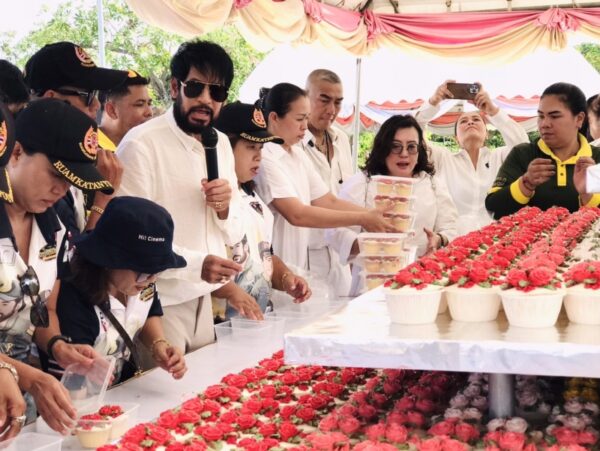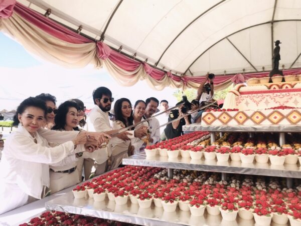 นอกจากมีพิธีบวงสรวงถวายเสด็จพ่อ ร.๕ อย่างยิ่งใหญ่สมพระเกียรติแล้ว พระเอกนักบุญเจ้าของฉายา “เทวดาเดิน” บิณฑ์ บรรลือฤทธิ์ ได้สั่งทำเค้กสุดพิเศษจาก S&P มาถวายพระองค์ท่าน เนื่องในวันคล้ายวันพระราชสมภพด้วย ปีนี้เป็นเค้กขนาดใหญ่สูง 4 ชั้น ชั้นบนเป็นเค้กที่แต่งหน้าเป็นรูปพวงมาลัยขนาดใหญ่ และมีพระบรมรูปหล่อเสด็จพ่อ ร.๕ ทรงยืนอยู่ด้านบน ส่วนด้านล่างอีก 3 ชั้น เป็นคัพเค้กที่แต่งหน้าเป็นรูปดอกไม้สีแดง สีชมพู สีเหลือง จำนวน 2,616 ชิ้น รวมน้ำหนักเค้กทั้งหมด 520 ปอนด์ หลังจากเสร็จสิ้นพิธีบวงสรวงแล้ว พระเอกนักบุญน้ำใจงาม บิณฑ์ บรรลือฤทธิ์ ได้นำเค้กทั้งหมดมาแจกจ่ายให้กับทุกท่านที่มาร่วมงาน ได้นำกลับไปรับประทานเพื่อความเป็นสิริมงคลของชีวิตด้วยมือของตัวเอง