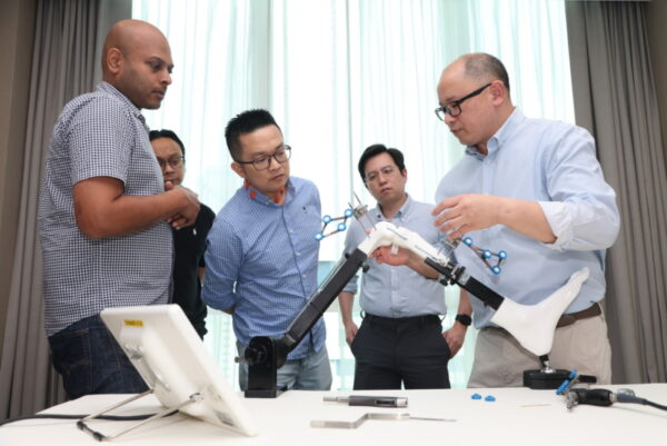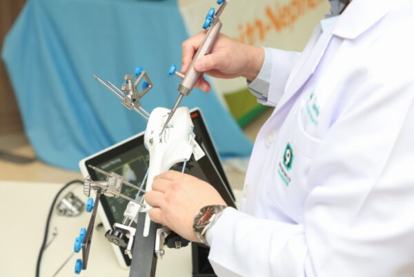 โดยโครงการ International Visiting Surgeon Program (VSP): Robotics Knee Replacement ครั้งนี้ มีคณะแพทย์จากประเทศมาเลเซีย เข้าร่วมการฝึกอบรมเชิงลึกด้านการผ่าตัดเปลี่ยนข้อเข่าด้วยหุ่นยนต์ โดยใช้เทคโนโลยี CORI Robotic System ซึ่งได้รับการยอมรับในระดับสากล หลักสูตรครอบคลุมการผ่าตัดทั้งแบบ Total Knee Arthroplasty (TKA) และ Unicompartmental Knee Arthroplasty (UKA) ผสานการเรียนรู้ทั้งภาคทฤษฎีและภาคปฏิบัติ ตั้งแต่การเตรียมห้องผ่าตัด การวางแผนผ่าตัด ไปจนถึงการฝึกปฏิบัติแบบ Hands-on ด้วยอุปกรณ์จำลอง (Sawbones) ภายใต้การดูแลของคณาจารย์แพทย์ผู้เชี่ยวชาญของประเทศไทย