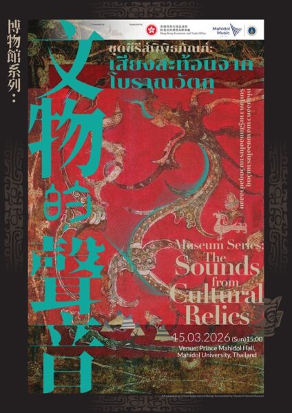 คณะดนตรีเกาเดอมัส ตุนหวง ฮ่องกง (Hong Kong Gaudeamus Dunhuang Ensemble) และสำนักงานเศรษฐกิจและการค้าฮ่องกงประจำกรุงเทพมหานคร (HKETO Bangkok) ร่วมกับมหาวิทยาลัยมหิดล ขอเชิญผู้สนใจเข้าชมการแสดงดนตรี ชุดซีรีส์พิพิธภัณฑ์ : เสียงสะท้อนจากโบราณวัตถุ (Museum Series: The Sounds from Cultural Relics) ซึ่งเป็นโครงการทางวัฒนธรรมอันโดดเด่นที่สะท้อนให้เห็นถึงความลึกซึ้ง และอิทธิพลระดับโลกของมรดกทางวัฒนธรรมจีนผ่านทางดนตรี โดยการแสดงฯ ได้จัดขึ้นในวันอาทิตย์ที่ 15 มีนาคม 2569 เวลา 15.00-16.30 น. ณ หอประชุมมหิดลสิทธาคาร มหาวิทยาลัยมหิดล ศาลายา จ.นครปฐม เปิดให้เข้าชมฟรีโดยไม่เสียค่าใช้จ่าย