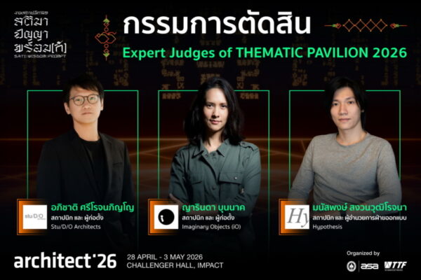 งานสถาปนิก’69 เผยโฉม Thematic Pavilion Official Line Up ซึ่งถือเป็นหนึ่งในไฮไลต์สำคัญของงานในปีนี้ ที่รวบรวมความร่วมมือระหว่างแบรนด์วัสดุก่อสร้างและสตูดิโอออกแบบ ชั้นนำ เพื่อสร้างสรรค์พาวิลเลียนที่ถ่ายทอดแนวคิดและตัวตนของแบรนด์ผ่านสถาปัตยกรรม โดยในปีนี้มี Thematic Pavilion รวมทั้งสิ้น 8 พื้นที่ ซึ่งแต่ละพื้นที่ถูกออกแบบให้เป็นพื้นที่ทดลองความคิดสร้างสรรค์และประสบการณ์ใหม่ของการใช้วัสดุ