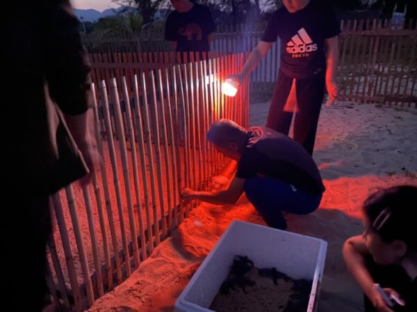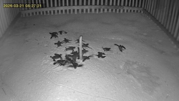 จึงเก็บลูกเต่าใส่ภาชนะฆ่าเชื้ออนุบาลให้แข็งแรงก่อนปล่อยลงสู่ทะเล และจัดเจ้าหน้าที่เฝ้าระวังดูแลหลุมฟักไข่ เพื่อรอลูกเต่าชุดที่สองที่จะฟักและขึ้นจากหลุม ก่อนจะดำเนินการขุดตรวจสอบภายในหลุมฟัก ในเวลาประมาณ 20.00 น. สำหรับหลุมฟักไข่เต่ามะเฟืองรังนี้แม่เต่าขึ้นมาวางไข่เมื่อวันที่ 24 มกราคม 2569 (ย้ายหลุมฟัก) รวมระยะเวลาการฟัก 57 วัน
