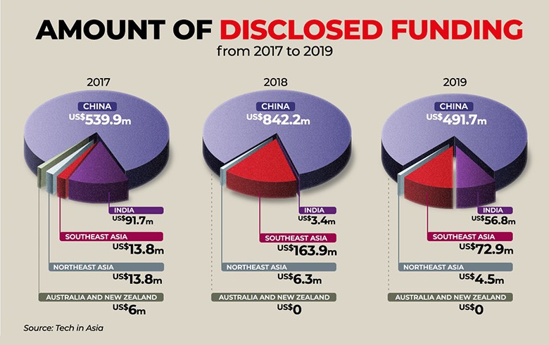อินโฟร์กราฟฟิกโดย Tech in Asia แสดงให้เห็นว่า สตาร์ทอัพระดับซีรีย์ A มีการระดมทุนมูลค่าเพิ่มขึ้นมากที่สุด จาก 12 ล้านดอลลาร์ในปี 2561 เป็น 26.1 ล้านดอลลาร์ในปี 2562 ซึ่งเพิ่มขึ้น 117.5% เมื่อเทียบเป็นรายปี ส่วนการระดมทุนโดยรวมสำหรับเอเชียตะวันออกเฉียงใต้ มีมูลค่าเพิ่มขึ้นจาก 13.8 ล้านดอลลาร์ในปี 2560 เป็น 72.9 ล้านดอลลาร์ในปี 2562