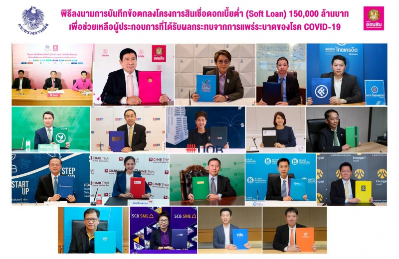 วันนี้ (20 มีนาคม 2563) ได้มีพิธีลงนามบันทึกข้อตกลงโครงการสินเชื่อดอกเบี้ยต่ำเพื่อช่วยเหลือผู้ประกอบการที่ได้รับผลกระทบทั้งทางตรงและทางอ้อมจากการระบาดของเชื้อ Covid-19 ระหว่างธนาคารออมสิน กับ สถาบันการเงินและสถาบันการเงินเฉพาะกิจรวม 20 แห่ง ด้วยระบบการประชุมทางไกลผ่านจอภาพ หรือ VDO Conference เพื่อเป็นเงินทุนสำหรับเสริมสภาพคล่องและลงทุน ให้ผู้ประกอบการสามารถเข้าถึงแหล่งเงินทุนผ่านกลไกของธนาคารเฉพาะกิจของรัฐ และธนาคารพาณิชย์ ที่ร่วมผนึกกำลังเป็นแหล่งทุนสนับสนุน รวมถึงเพื่อแบ่งเบาภาระของผู้ประกอบการในช่วงที่ได้รับผลกระทบจากการระบาดของเชื้อ Covid-19 เป็นการเร่งด่วน