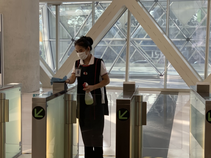 พร้อมทั้งฉีดสเปรย์ฆ่าเชื้อ ทุกชั่วโมง รวมทั้งจัดให้มีแอลกอฮอล์เจลเพื่อล้างมือประจำจุด จัดเตรียมหน้ากากอนามัยสำหรับลูกค้า และให้ทำความสะอาดบัตรเข้าออกเป็นประจำเพื่อป้องกันการแพร่เชื้อที่อาจเกิดขึ้นได้