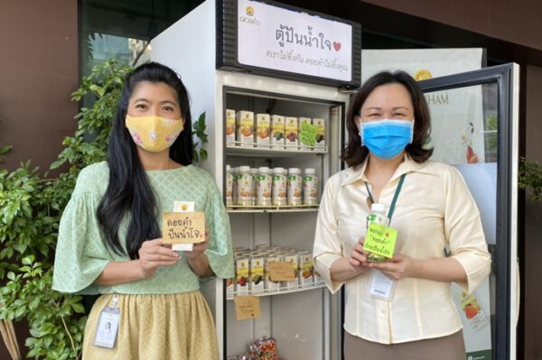 โดยดอยคำ ได้นำผลิตภัณฑ์ น้ำเห็ดหลินจือผสมน้ำผึ้ง, น้ำนมถั่วเหลืองผสมวุ้นมะพร้าว, น้ำมัลเบอร์รี๕๐%, น้ำชาเขียวรสต้นตำรับ, น้ำกระเจี๊ยบ, น้ำมะขามผสมน้ำผึ้ง, ฝรั่งชมพูอบแห้ง, ผลไม้สด, อาหารแห้ง, บะหมี่กึ่งสำเร็จรูป มาแบ่งปันใส่ “ตู้ปันน้ำใจ” เพื่อบรรเทาความเดือดร้อน สำหรับผู้ที่เผชิญวิกฤตโควิด-19 บริเวณหน้าร้านดอยคำ สาขาราชเทวี นอกจากนี้ ได้มอบผลิตภัณฑ์น้ำมะขามผสมน้ำผึ้ง ร่วมกับมูลนิธิเวิร์คพอยท์ “โครงการตู้กับข้าวคนไทย” แบ่งปัน ยิ้มสู้ด้วยกัน ช่วยส่งต่อกระจายความสุขครอบคลุมทุกภูมิภาคทั่วประเทศ
