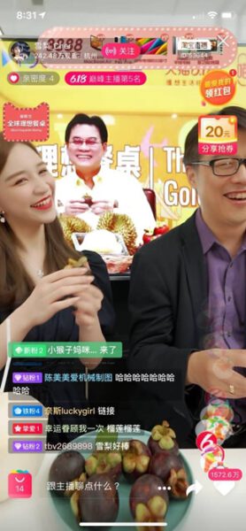 ” มีความสุขมากที่ได้มีโอกาสทำหน้าที่แทนเกษตรกรของไทยทั้งประเทศ และมีความสุขมากที่ได้มีโอกาสขายผลไม้ที่มีคุณภาพให้กับพี่น้องประชาชนชาวจีนทั้งประเทศ ซึ่งถือเป็นตลาดที่สำคัญที่สุดในโลกตลาดหนึ่งของประเทศไทย ส่วนเป็นที่พอใจหรือไม่นั้นต้องถามพี่น้องประชาชนชาวจีนทุกท่านที่รับชม แต่ก็หวังว่าจะได้รับการสนับสนุนเป็นอย่างดีจากพี่น้องชาวจีนทุกท่าน สำหรับรับยอดขายครั้งนี้ฟังจากผู้บริหารของอาลีบาบา คุณ Fahad Sami (ผู้อำนวยการอาวุโส สำนักงานต่างประเทศ เครืออาลีบาบา) ได้รายงานแล้วถือว่าตัวเลขดีมากเพราะว่ามะพร้าวขายได้แล้ว 350,000 ลูก มังคุดอีก 4,000,000 ลูก โดยประมาณภายในเวลา 7 วันในเทศกาล 6.18 ของแพลตฟอร์มนี้” นายจุรินทร์ กล่าว