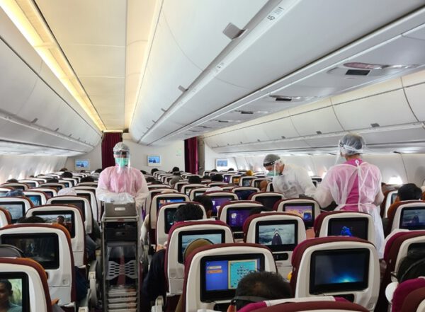 การบินไทยให้บริการผู้โดยสารภายใต้มาตรการป้องกันการแพร่ระบาดของโรคโควิด-19 ด้วยการทำ Physical Distancing ในทุกขั้นตอนการโดยสาร พร้อมเน้นย้ำให้พนักงานต้อนรับบนเครื่องบินปฏิบัติตามมาตรการความปลอดภัยอย่างเคร่งครัดขณะปฏิบัติหน้าที่