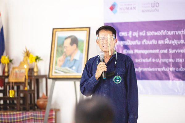 โดยหลักสูตรการป้องกัน เตือนภัย และฟื้นฟูชุมชนในภาวะวิกฤต หรือ CMS (Crisis Management Survival Camp) ได้น้อมนำแนวทางพระราชดำริของพระบาทสมเด็จพระบรมชนกาธิเบศร มหาภูมิพลอดุลยเดชมหาราช บรมนาถบพิตร เรื่องเกษตรทฤษฎีใหม่ และหลักเศรษฐกิจพอเพียง มาประยุกต์ใช้เพื่อการออกแบบพื้นที่อยู่อาศัยและพื้นที่ทำกิน เน้นการสร้างแหล่งน้ำไว้ในพื้นที่ของตนเอง เพื่อให้สามารถเก็บน้ำฝนไว้ใช้อุปโภคและบริโภคได้ตลอดทั้งปี ทั้งในฤดูน้ำหลากยังสามารถช่วยชะลอและเก็บกักน้ำ บรรเทาปัญหาอุทกภัยที่จะเกิดขึ้นได้